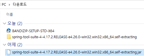 3. jar 파일 압축 해제 (spring-tool-suite-4-4.17.2.RELEASE-e4.26.0-win32.win32.x86_64.self-extracting.jar)