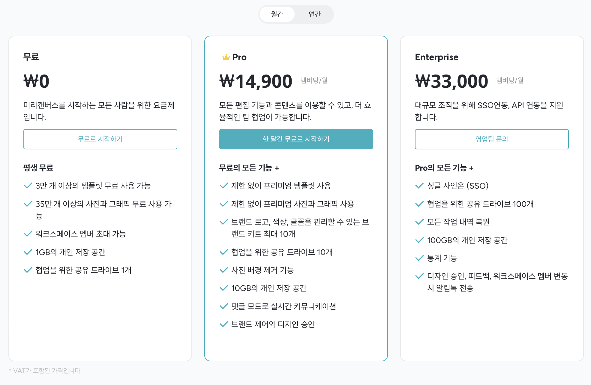 월간/열간 가격이 있는데 무료로 충분할 듯 보인다.